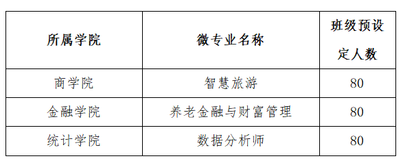 应2025级学生对微专业学习表现出较高热情,我校针对这一需求决定本学期对智慧旅游、养老金融与财富管理、数据分析师三个微专业面向2023、2024、2025三个年级本科学生再次开展微专业报名工作,鼓励学有余力的学生进一步完善知识结构,提升学生专业培养与社会需求的匹配度,增强竞争能力。